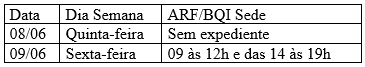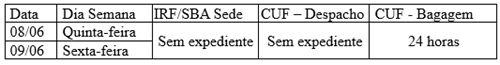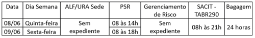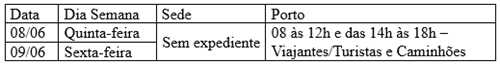 PSR Foz do Iguaçu: Não haverá expediente no Porto Seco de Foz do Iguaçu nos dias 8 e 9 de junho. A operação retoma seu funcionamento normal no sábado dia 10/06.