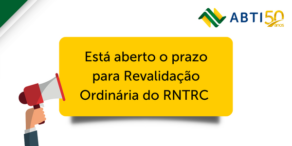 Para conhecimento, desde terça-feira (02/05) está aberta a Revalidação Ordinária (antigo recadastramento) do RNTRC para Empresa de Transporte Rodoviário de Cargas - ETC.