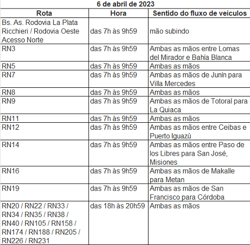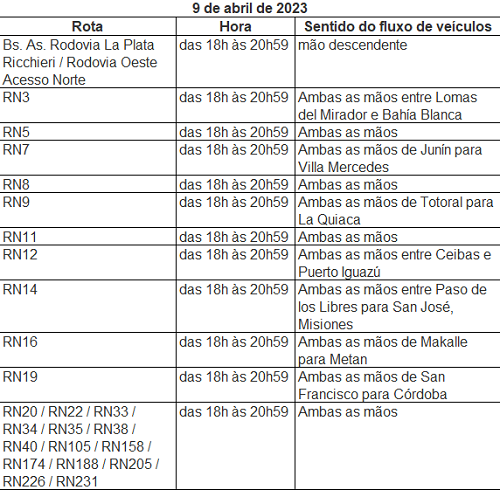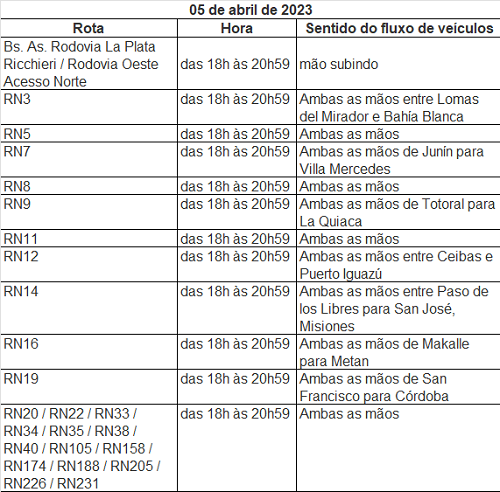Haverá restrição de circulação de veículos na Argentina nos dias 05, 06 e 09 de abril, para veículos das categorias N2, N3, O, O3 e O4 e para o transporte de cargas com peso bruto superior a 7 toneladas.