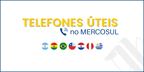 Baixe agora mesmo em seu celular a relação de contatos úteis dos países do Mercosul (Argentina, Bolívia, Brasil, Chile, Paraguai, Peru e Uruguai), clicando aqui.