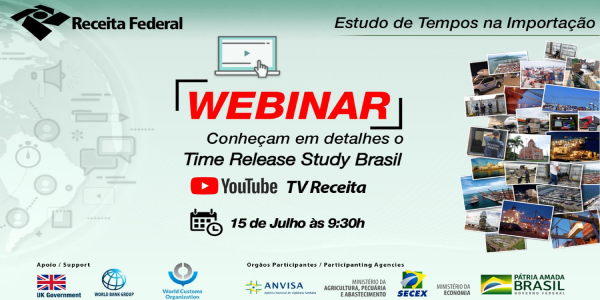 Após sessão virtual de lançamento dos resultados obtidos no primeiro Time Release Study Brasil ser um sucesso e já alcançar mais de 19 mil visualizações no canal TV Receita no youtube, será realizada uma webinar com importantes intervenientes no comércio exterior.