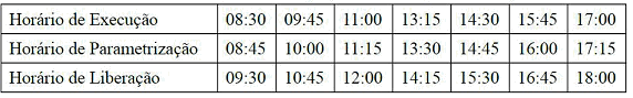 **Neste informativo foi usada uma nomenclatura diferente, onde horário de execução é o horário limite para registrar uma DI.