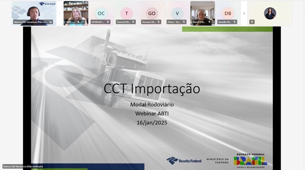 "Uma quebra de paradigmas" foi como a implementação do módulo CCT Importação no modal Rodoviário foi descrita pelo gerente do projeto, o auditor fiscal da Receita Federal, Marcos Eidi Yamamura durante Webinar sobre o tema realizado nesta quinta-feira (16/1) pela ABTI em parceria com a RFB.