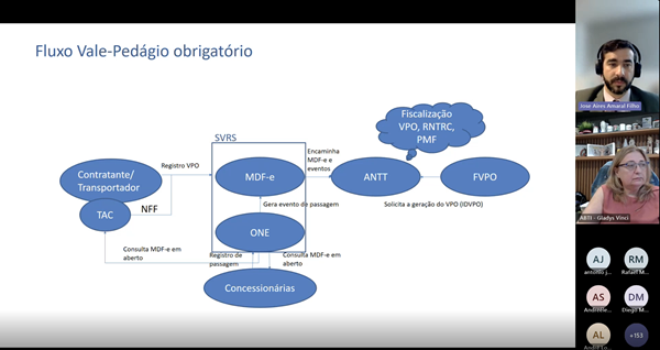 Após recapitular estes pontos, Amaral respondeu perguntas dos participantes. O superintendente destacou que a antecipação do vale-pedágio não se aplica ao transporte internacional realizado por veículo habilitado, entretanto, é preciso atentar para os casos em que a transportadora também realiza operações locais e práticas como a "pernada nacional", em que será necessário cumprir a legislação nacional e possuir a TAG com o valor de pedágio antecipado.