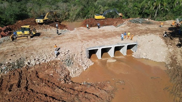 Os técnicos da autarquia trabalharam neste ponto dia e noite para devolver à trafegabilidade no local. Os serviços de recuperação do corpo estradal exigiu que - de forma emergencial - fosse implantado um novo sistema de drenagem com quatro galerias pluviais em concreto e recomposição da pista em tempo recorde. O trabalho de urgência garantiu assim o restabelecimento de um corredor logístico para o abastecimento das cidades, operações do sistema de saúde e demais necessidades das regiões central e fronteira Oeste do RS.